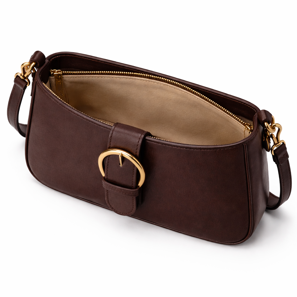 De Retro Schoudertas is een stijlvolle tas met een klassieke uitstraling, geschikt voor dagelijks gebruik. Het compacte ontwerp met het goudkleurige ringdetail aan de voorzijde geeft de tas een tijdloze look die makkelijk te combineren is met verschillende outfits.